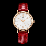 IWC 포르토피노 레이디 로즈골드 화이트 다이얼 레더 스트랩 34mm IW357401