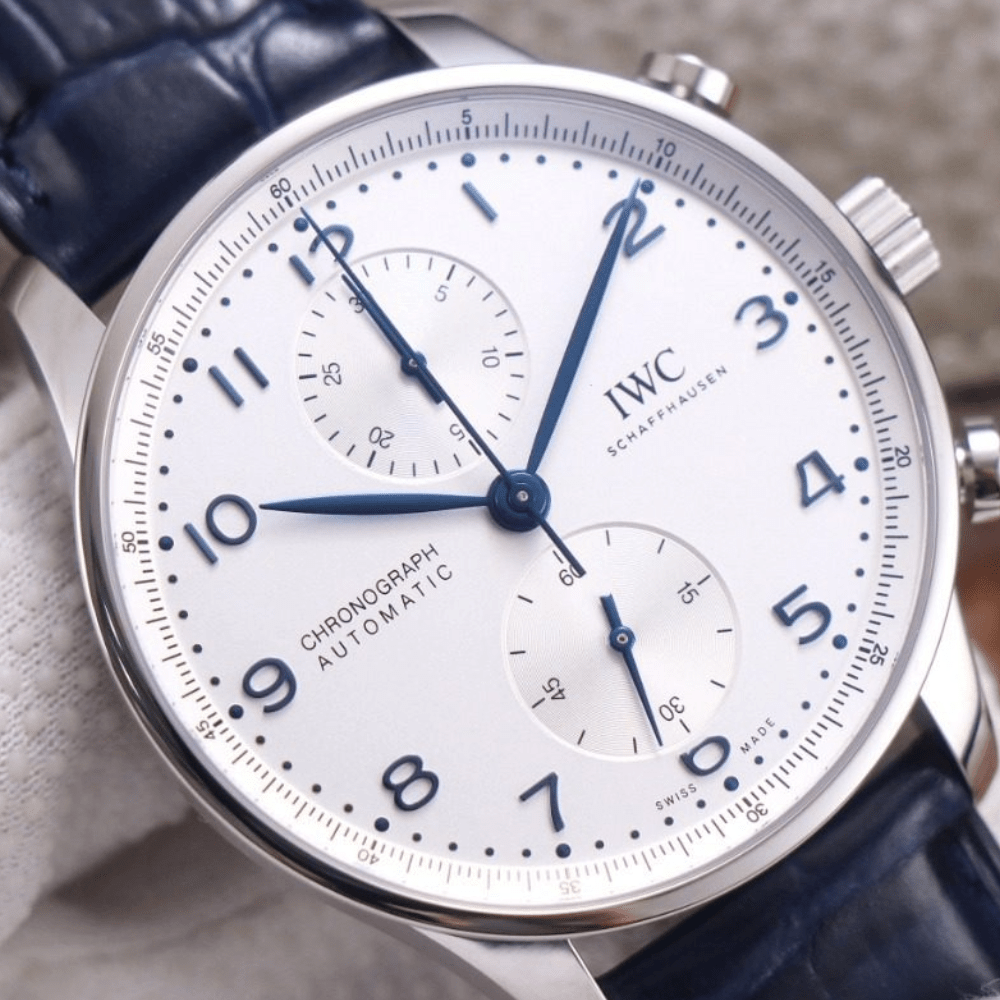 IWC 포르투기저 크로노그래프 화이트골드 화이트/블루 다이얼 레더 스트랩 41mm IW371605
