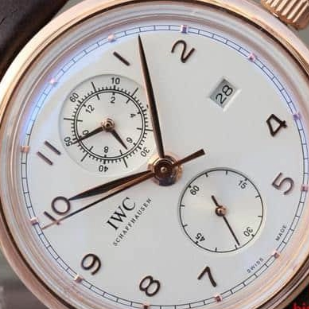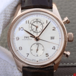 IWC 포르투기저 크로노그래프 클래식 로즈골드 화이트 다이얼 레더 스트랩 42mm IW390403