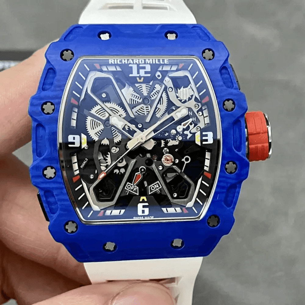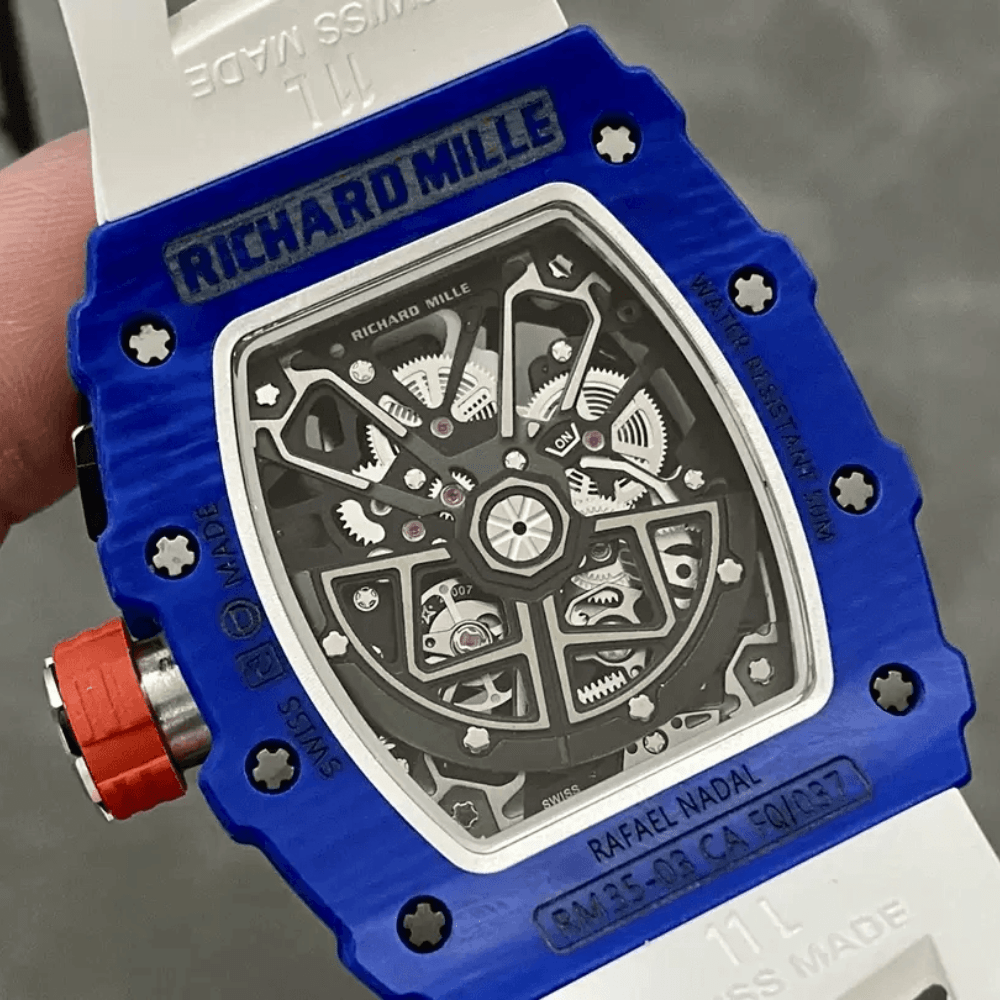 리차드밀 라파엘 나달 블루 카본 스켈레톤 다이얼 화이트 러버 스트랩 RM35-03