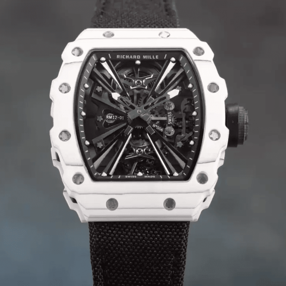 리차드밀 투르비옹 화이트 카본 블랙 우븐 스트랩 RM12-01