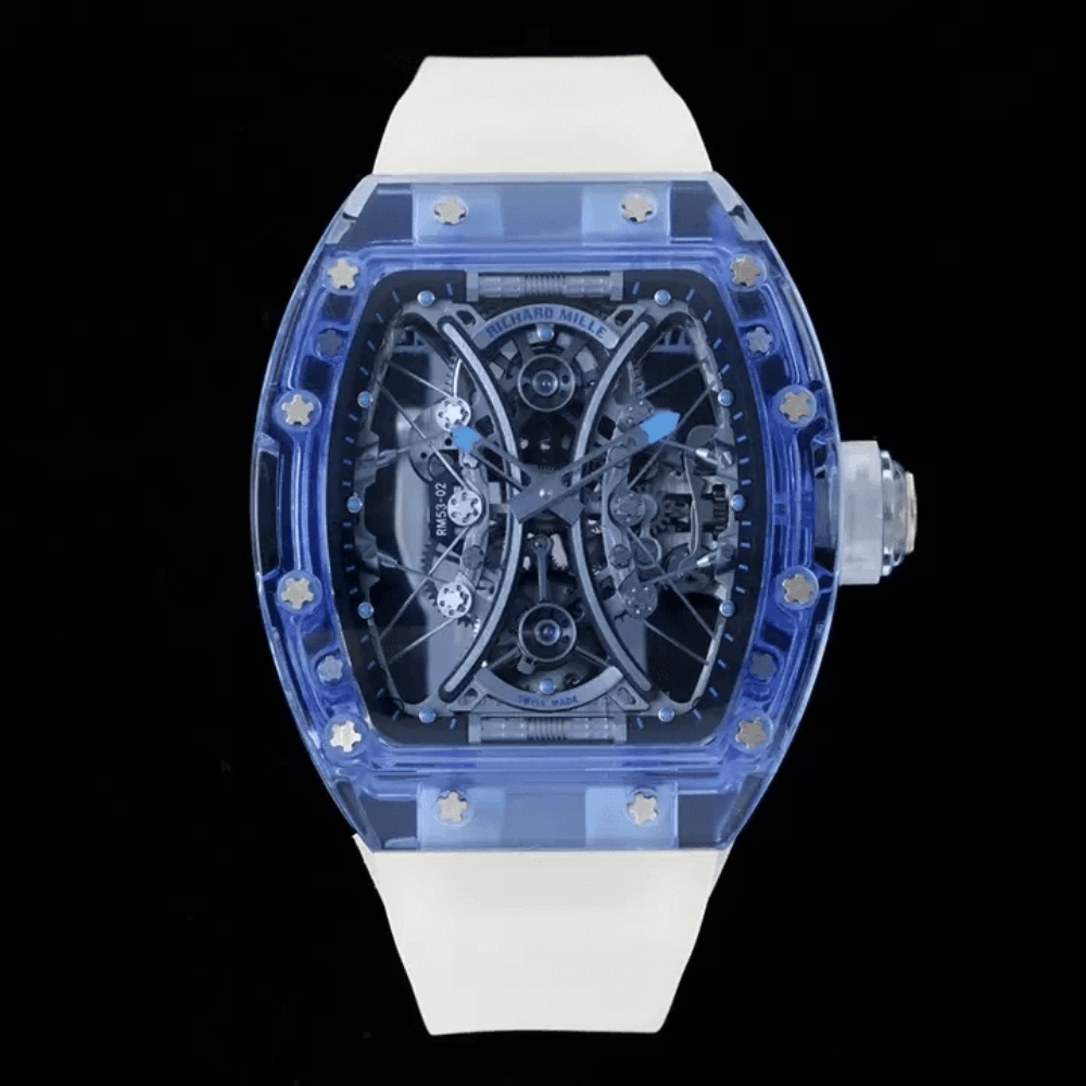 리차드밀 트랜스페어런트 블루 화이트 러버 스트랩 RM53-02
