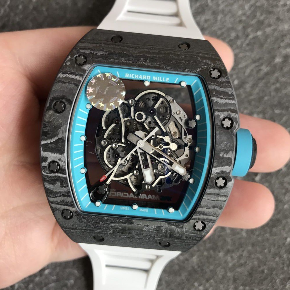 리차드밀 부바왓슨 블랙 NTPT 카본 스켈레톤 다이얼 블루 러버밴드 RM-055