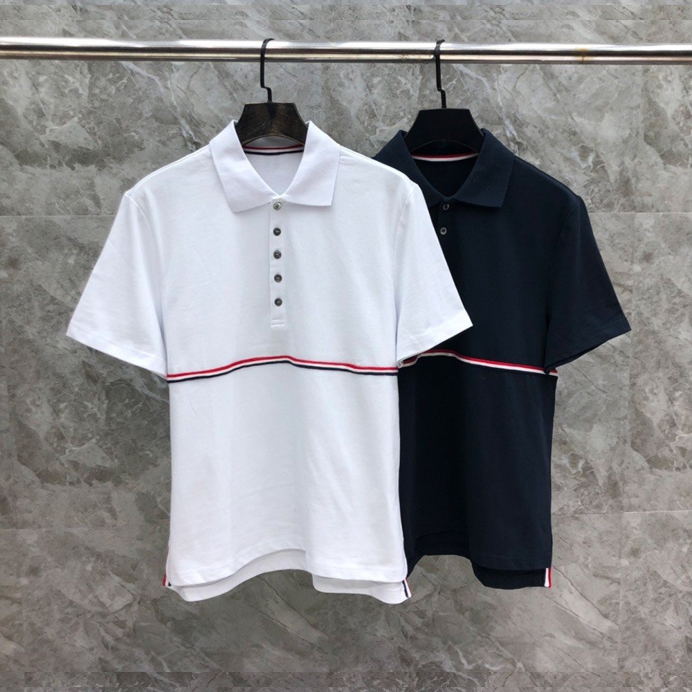 톰브라운 24SS 스트라이프 웨빙 라펠 폴로 반팔