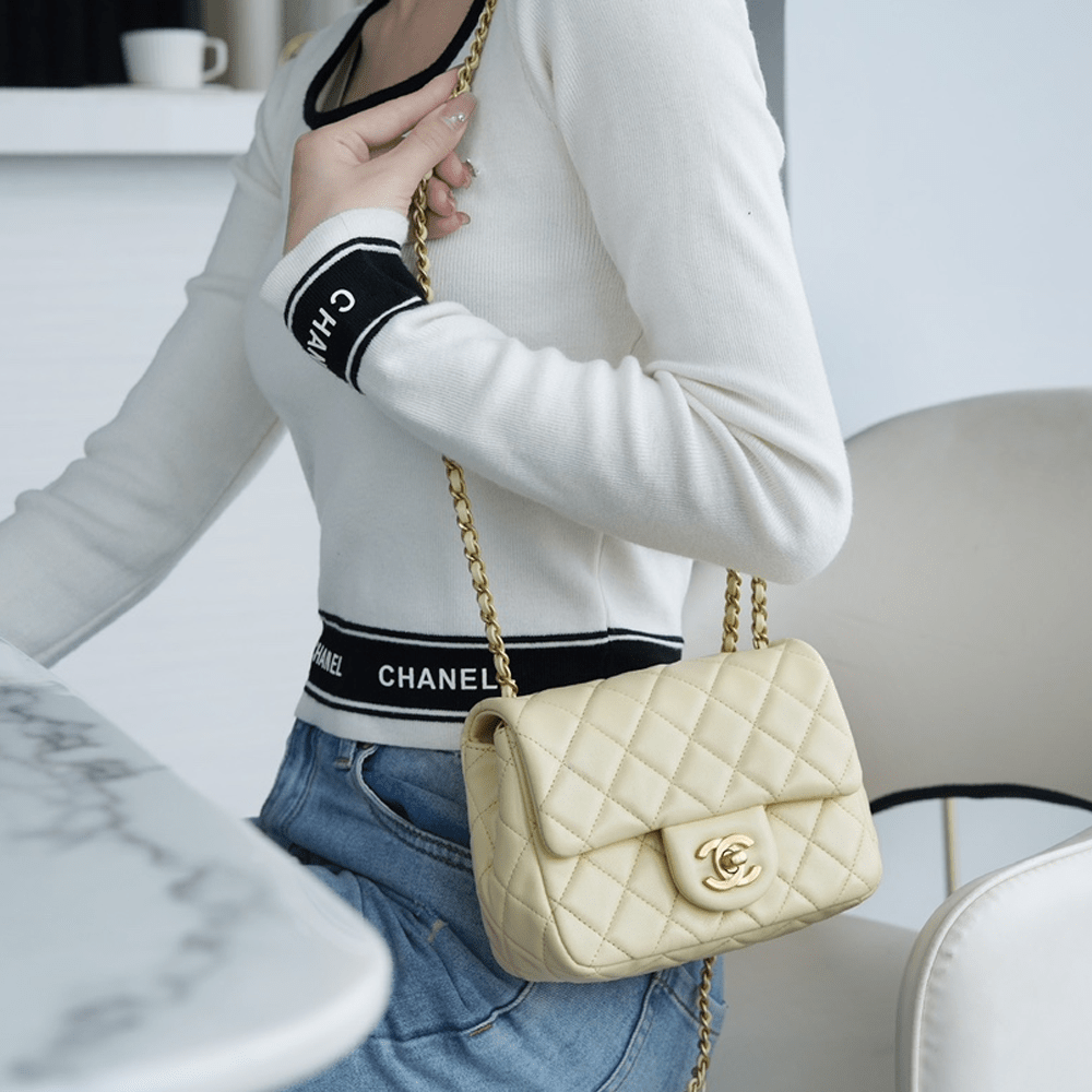 팬더샵 샤넬 메탈볼 플랩백 옐로우 금장 램스킨