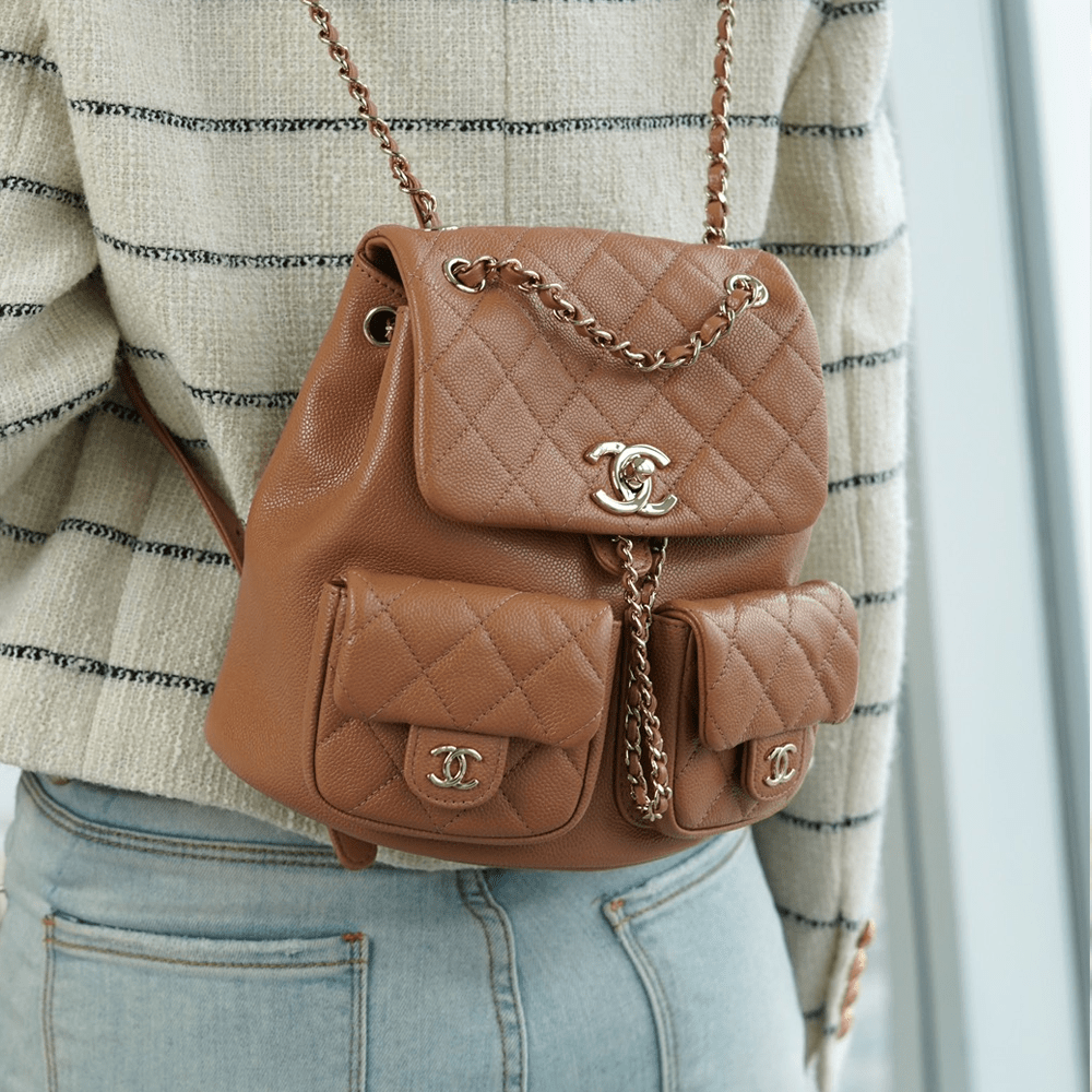 팬더샵 샤넬 23A 듀마 더블 포켓 백 라지 카라멜