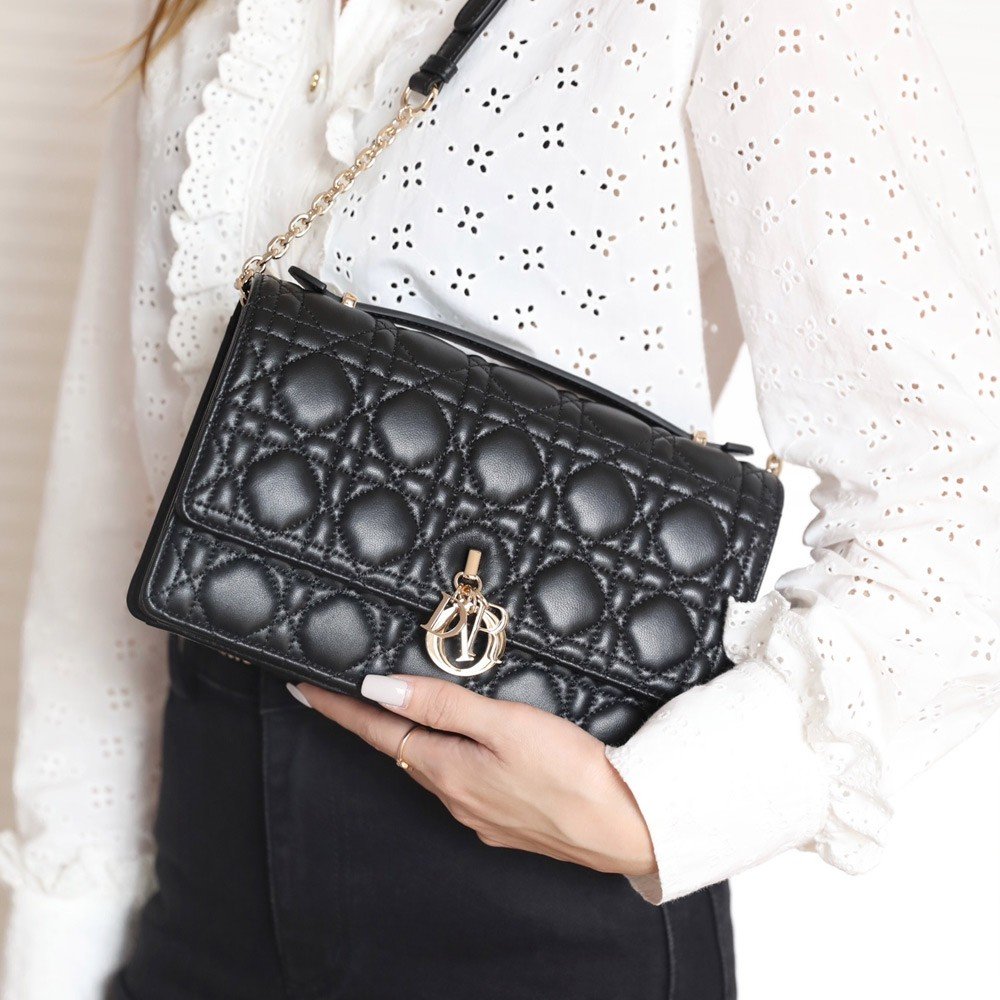 디올 레이디 탑 핸들 클러치 미니 백 블랙