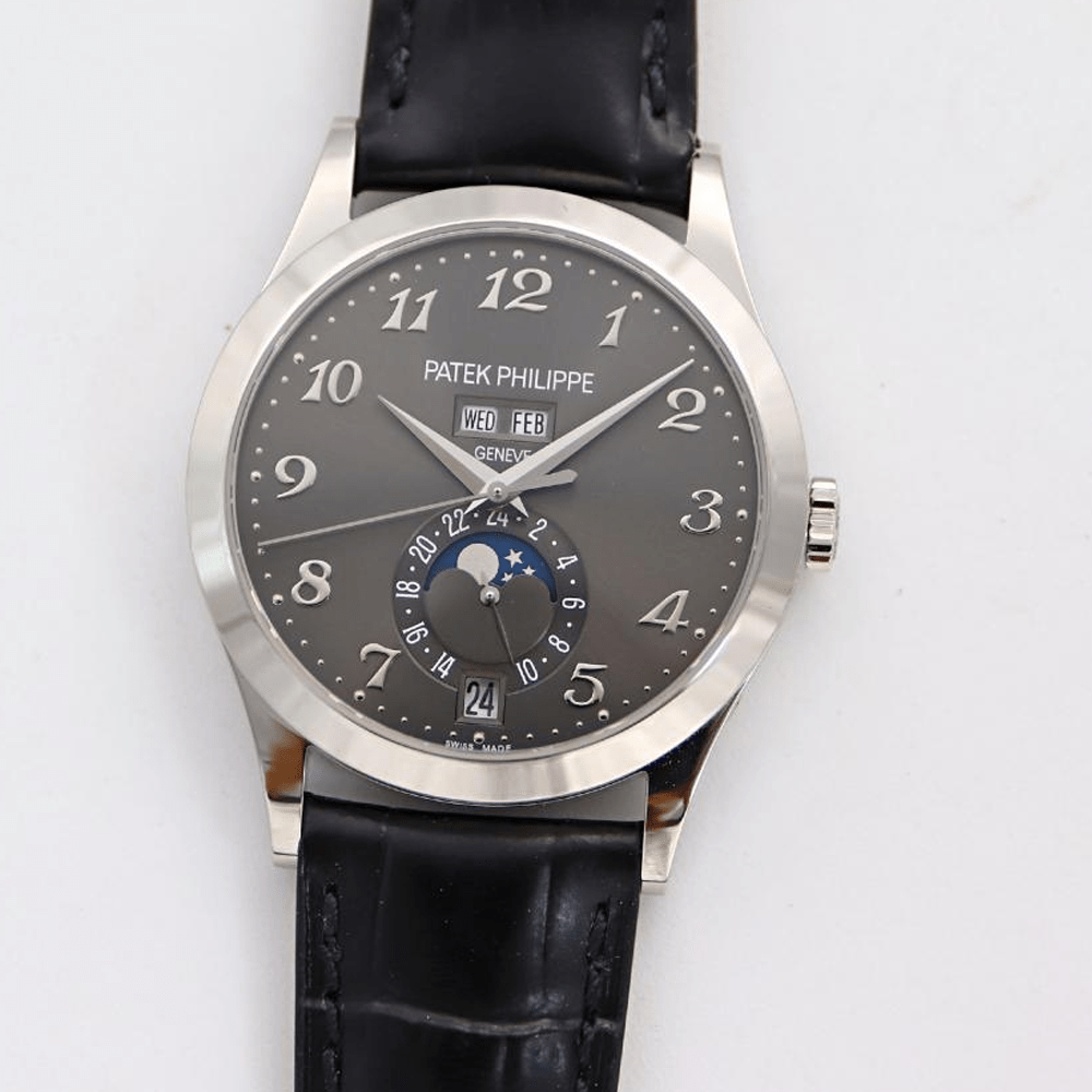 파텍필립 컴플리케이션 애뉴얼캘린더 그레이 다이얼 SS 가죽 밴드 5396