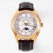 [다이얼] 12시 방향의 두 개의 직사각형 창은 요일과 월을 각각 표시할 수 있습니다. 날짜 디스플레이는 다이얼의 바깥쪽 가장자리에 있으며 화살표가 있는 포인터로 표시됩니다. 6시 방향의 문페이즈 디스플레이는 푸른 밤하늘과 플래티넘 달로 구성되어 있습니다. 스케일 링에는 플래티넘 아라비아 숫자와 막대 모양의 아워 마커가 장착되어 깊은 문페이즈 디스크를 더욱 돋보이게 합니다.