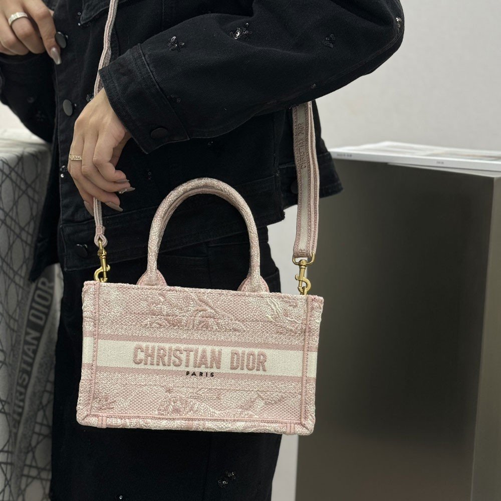 디올 북 토트 스트랩 백 미니 뜨왈 드 주이 리버스 핑크