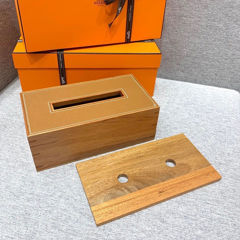 에르메스 원목 티슈 박스 브라운