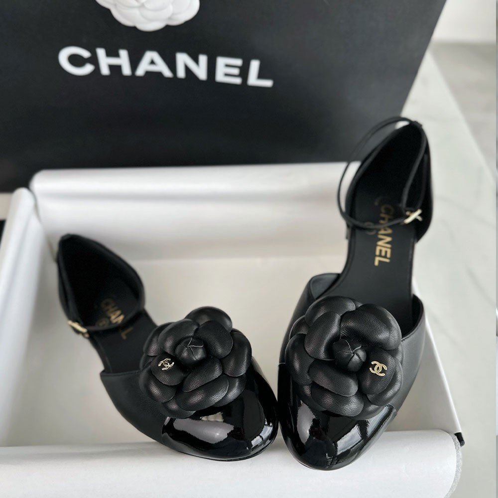 샤넬 24P 까멜리아 메리제인 플랫 슈즈 블랙
