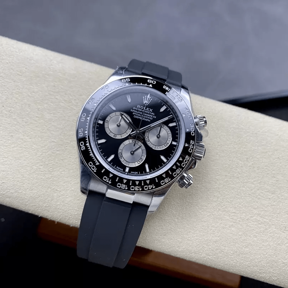 롤렉스 크로노그래프 데이토나 블랙 다이얼 바인덱스 러버밴드 40mm (텅스텐 헤비버전) 126519