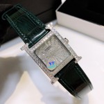 최신 Hermes H-our 스퀘어 다이아몬드 주얼리 시계 케이스가 출시되었습니다. 말 그대로 가장 순수한 다이아몬드를 하나씩 선별하고 눈에 보이지 않는 인레이 기술을 사용하여 시계의 모든 부분을 인레이하여 반짝이고 밝은 평면을 만듭니다. 오리지널 스위스 ETA 쿼츠 무브먼트, 크기: 26mmx26mm, 차광 사파이어 크리스털 미러, 그에 어울리는 컬러풀한 미국 악어가죽 스트랩으로 구성된 이 독특하고 다재다능한 주얼리 시계는 H 팬들에게 꼭 필요한 아이템입니다!