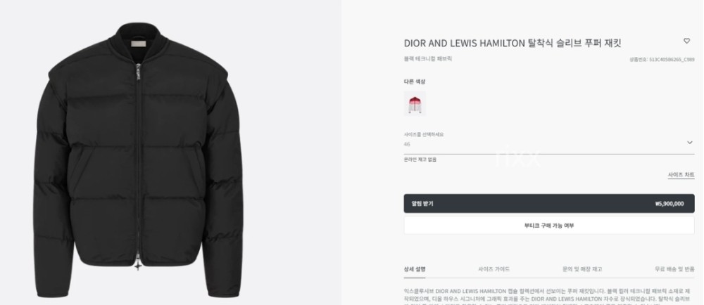 디올X루이스해밀턴 탈착식 슬리브 푸퍼 재킷 【매장-600만원대】