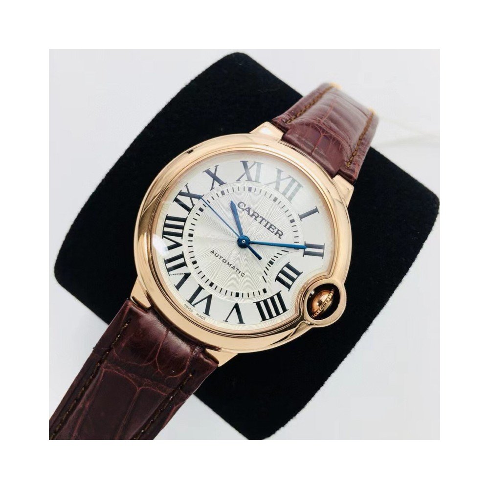 AF 팩토리 33mm CARTIER 까르띠에 블루 벌룬 시리즈 화이트 다이얼 브라운 가죽 스트랩 시계
