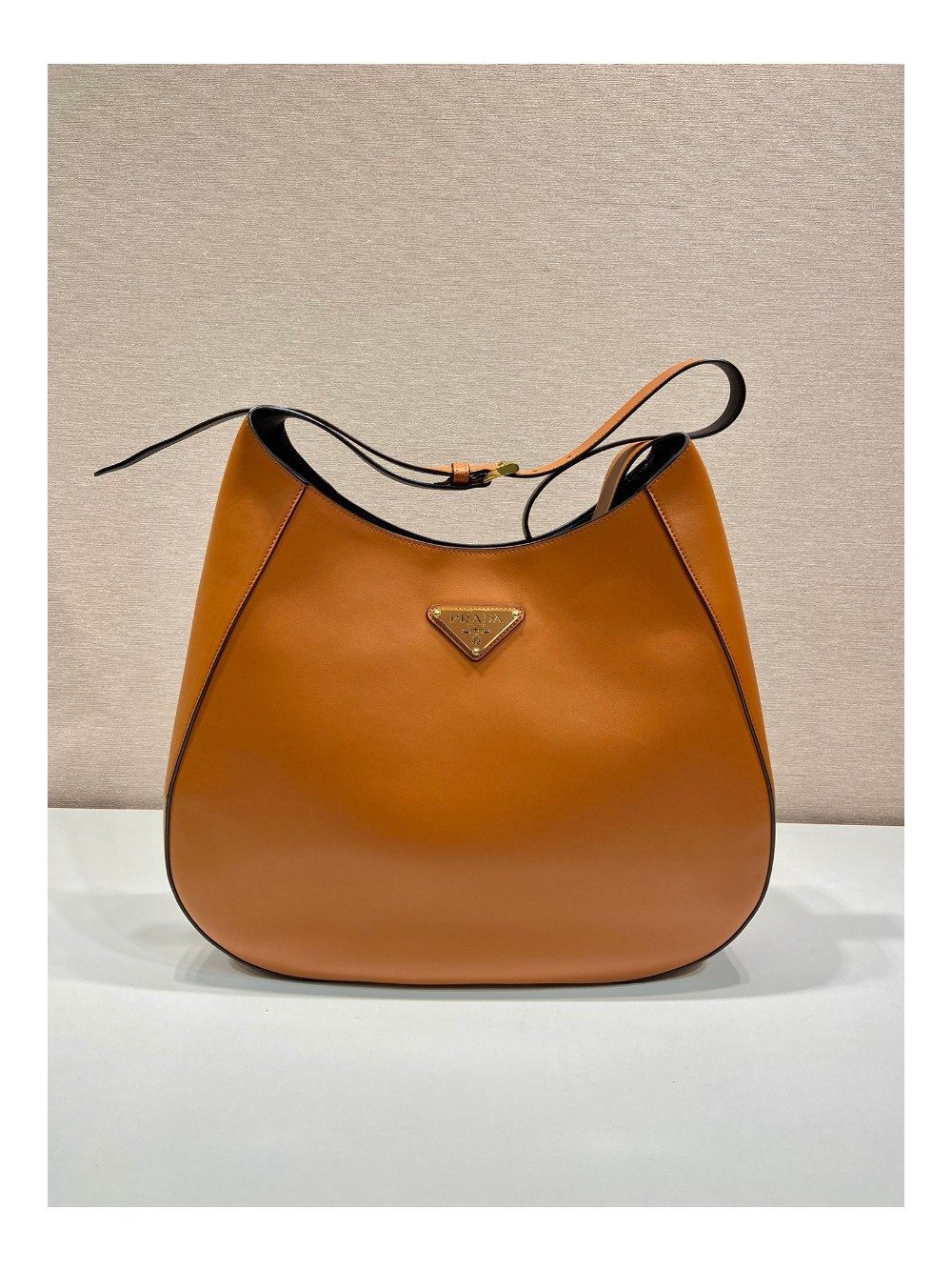 프라다 탑스티치 장식 라지 가죽 숄더백