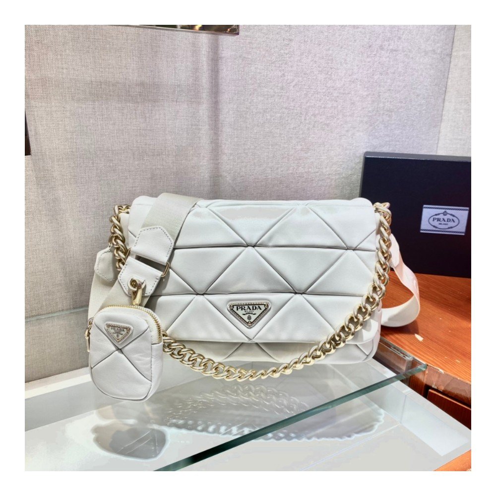 프라다 시스템 나파 가죽 패치워크 숄더백 화이트