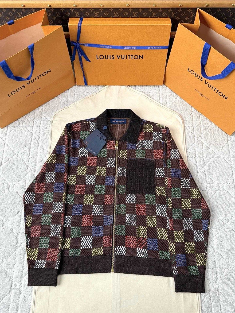 루이비통 자카드 다미에 코튼 저지 블루종 / 팬츠 셋업