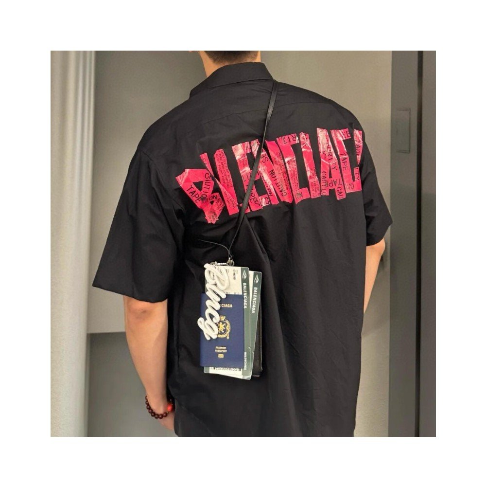 발렌시아가 레드 테이프 타입 라지 핏 숏슬리브 셔츠 블랙